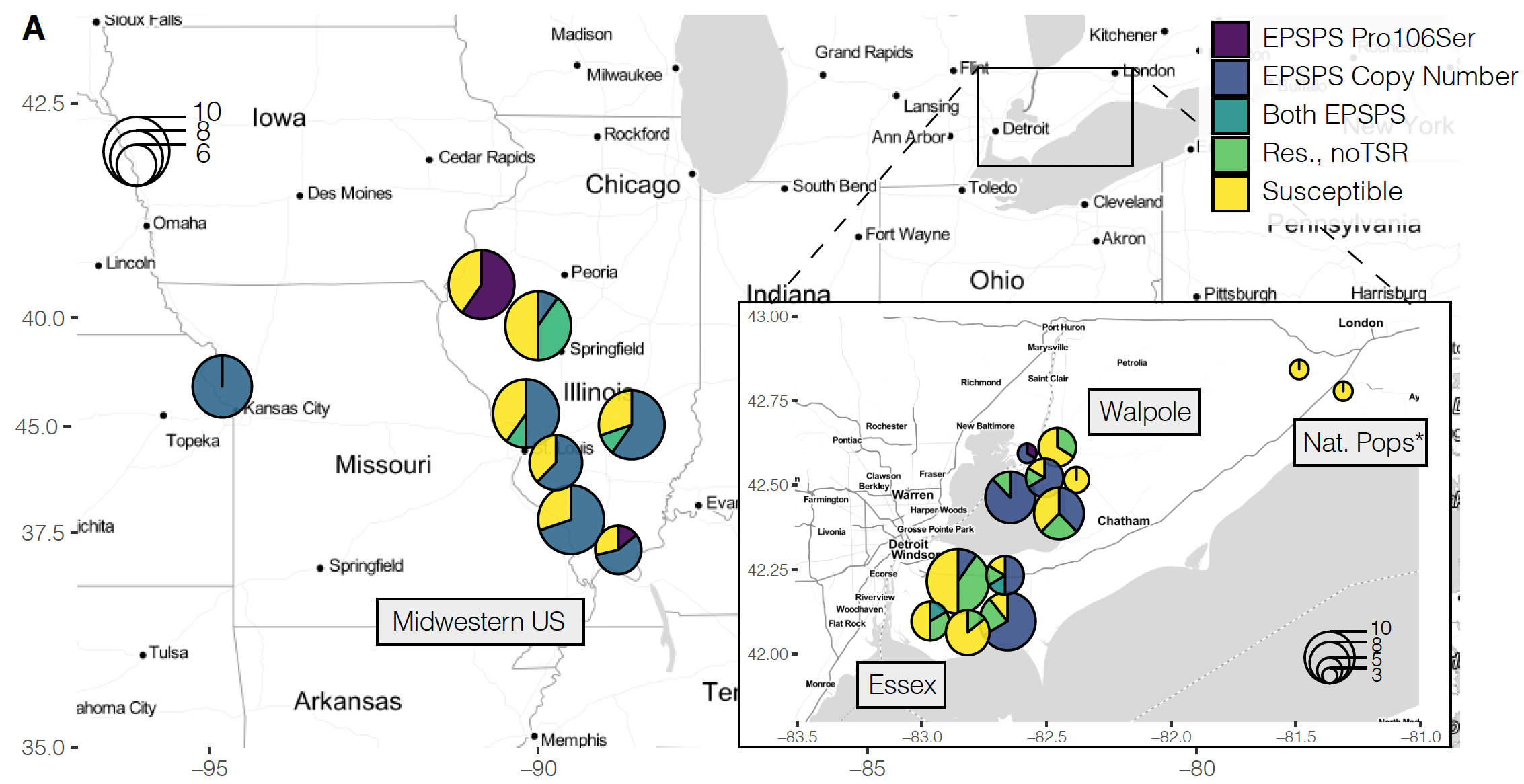 Kreiner JM, Tranel PJ, Weigel D, Stinchcombe JR, & Wright SI. 2021. The genetic architecture and population genomic signatures of glyphosate resistance. Molecular Ecology