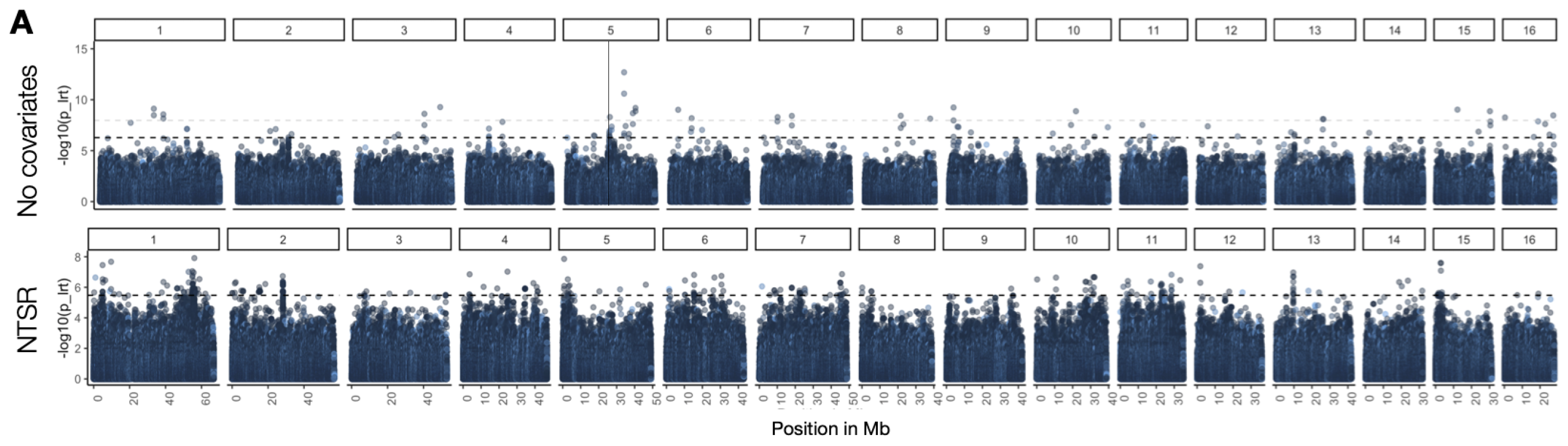 We therefore set out to characterize the polygenic basis of resistance in common waterhemp, both with regard to genetic architecture of herbicide resistance (the number and distribution of genes involved, the frequency and effect size of resistance-loci) and how selection from herbicides has shaped genome-wide diversity. In particular, I was interested in how much variation in resistance across populations could be explained by genome-wide loci compared to monogenic mechanisms that are typically the focus of herbicide resistance research. In our paper at Molecular Ecology, published as a part of the special issue “Resistance evolution, from molecular mechanism to ecological context”, curated by Gina Baucom], we quantify the relative importance of polygenic vs monogenic herbicide resistance, show that strong selection shapes its genetic architecture with large effect & rare alleles, and find evidence of their maintenance by recent positive selection. Somewhat surprisingly, we show that polygenic resistance is of comparable importance to monogenic mechanisms in conferring round-up resistance in agricultural populations, even in individuals that already segregate for large-effect target-site mutations.