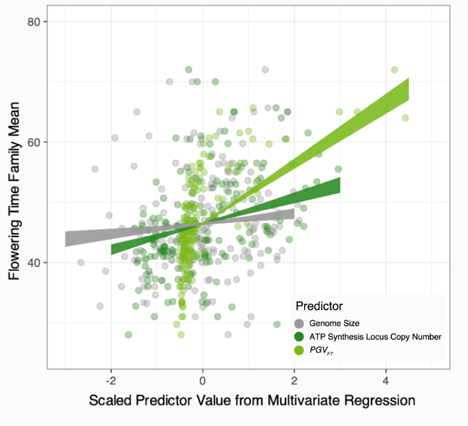 Kreiner JM, Hnatovska S, Stinchcombe JR, & Wright SI. Genome size and repeat content contribute to a complex architecture of flowering time in Amaranthus tuberculatus. PLOS Genetics
