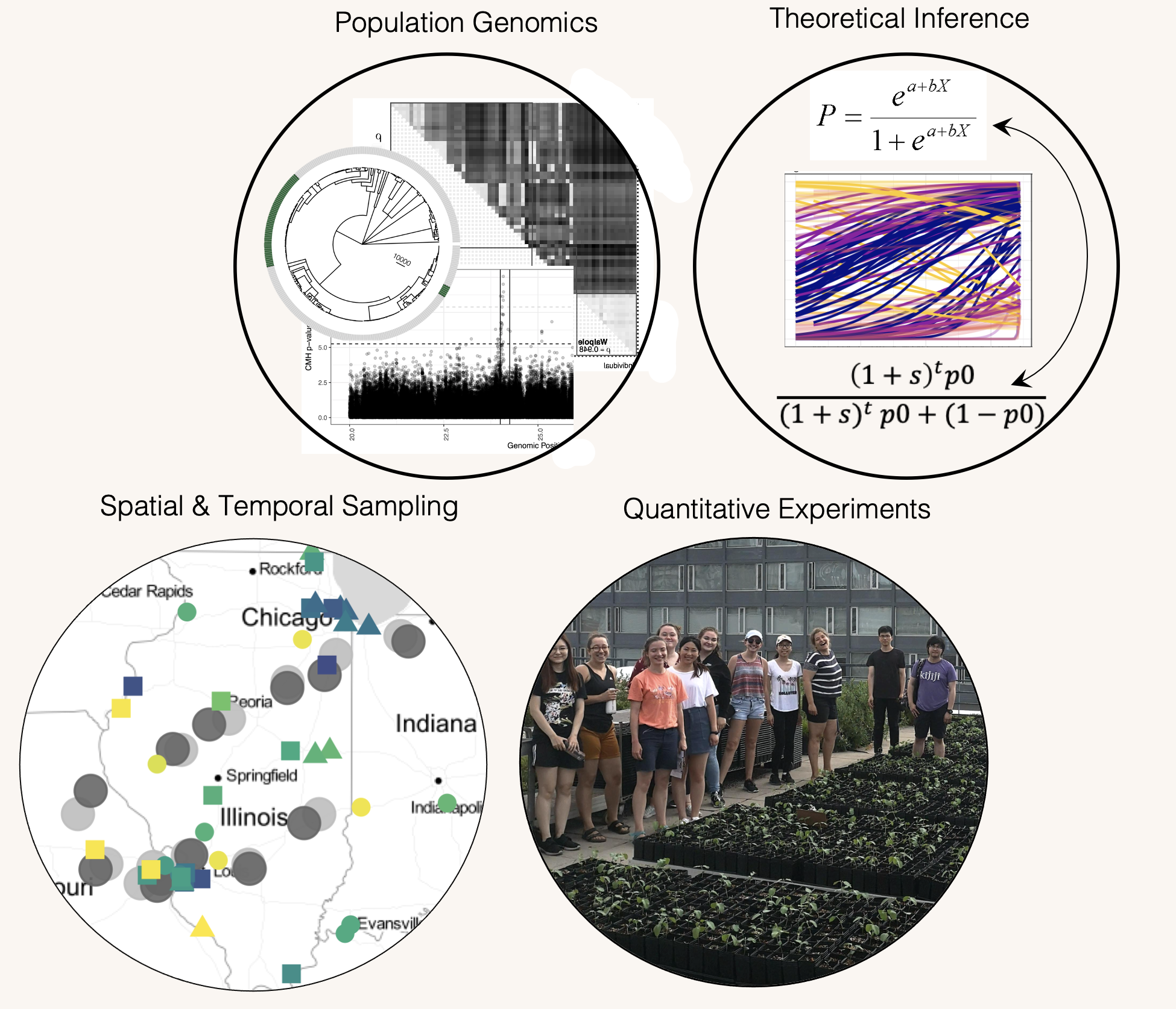 Our lab uses population genomics to dissect the nature and architecture of adaptive variation across contemporary landscapes. We combine spatiotemporal sampling (contemporary, historical, and ancient) with large-scale sequencing and experiments to reconstruct evolution in systems of pressing
