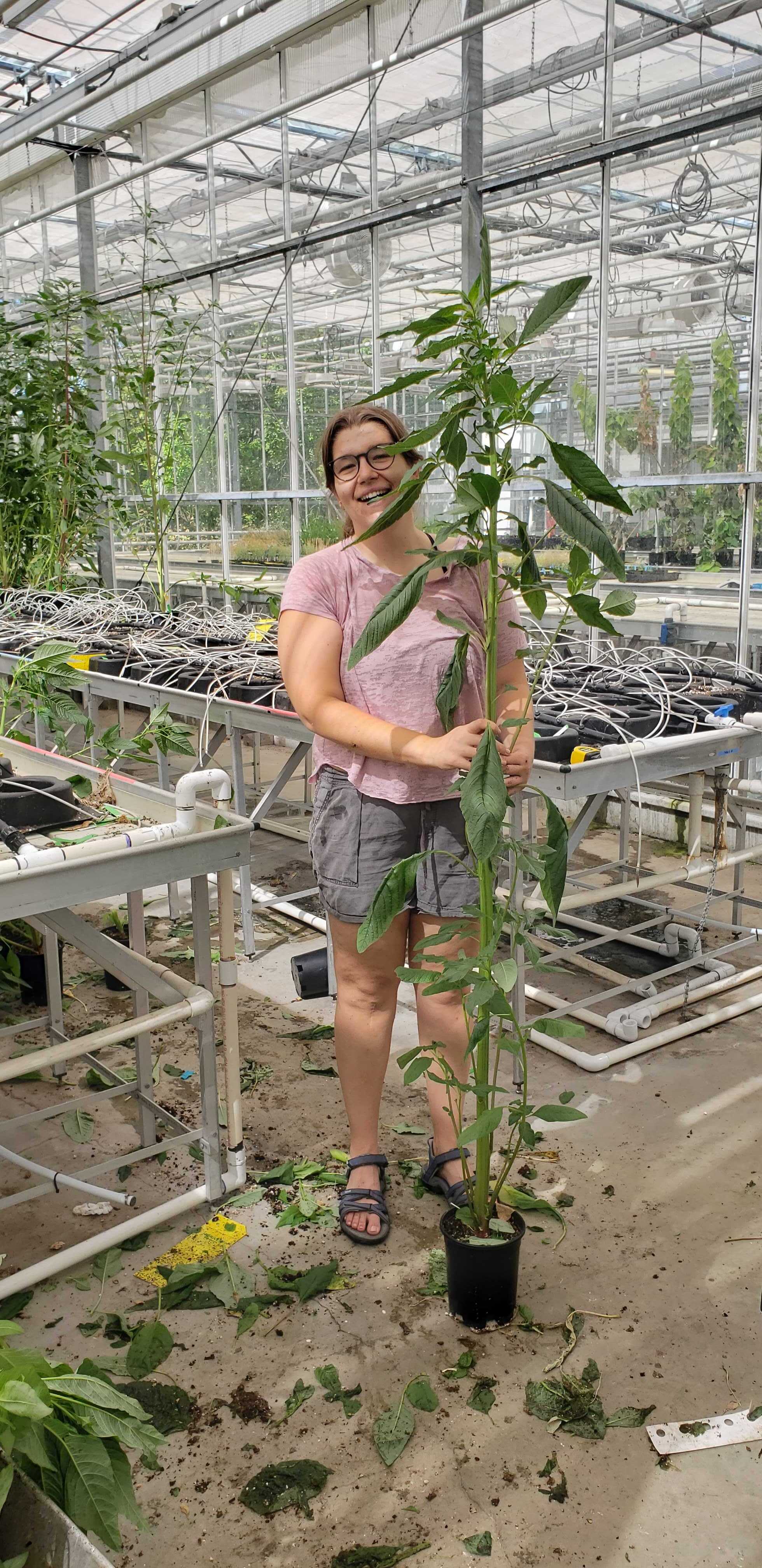 In 2018, we performed our first grow-out of our pairwise, contemporary waterhemp collections across the range at the Earth Sciences Building at UofToronto [pictured below!]. These were the plants we sequenced and used to complement the herbarium data above. In addition to sequence data, we measured a suite of phenotypes across agricultural and natural plants grown in the same environments/experimental treatments to understand the genetics underlying phenotypic differentiation (local adaptation to agriculture).